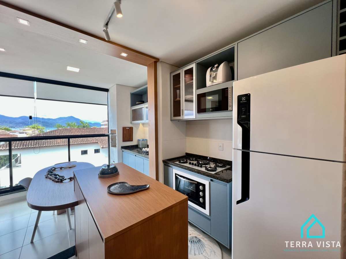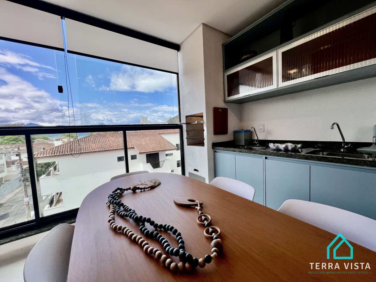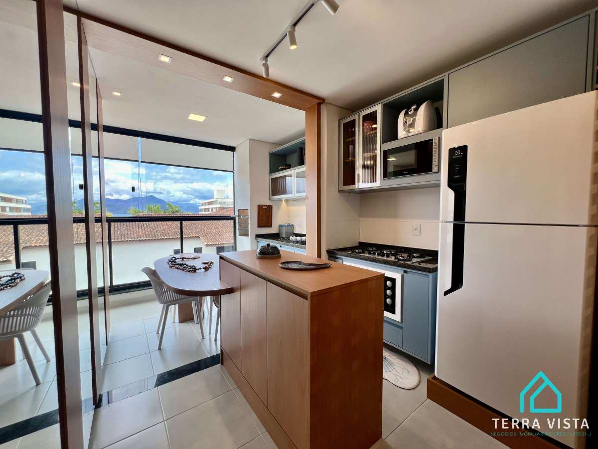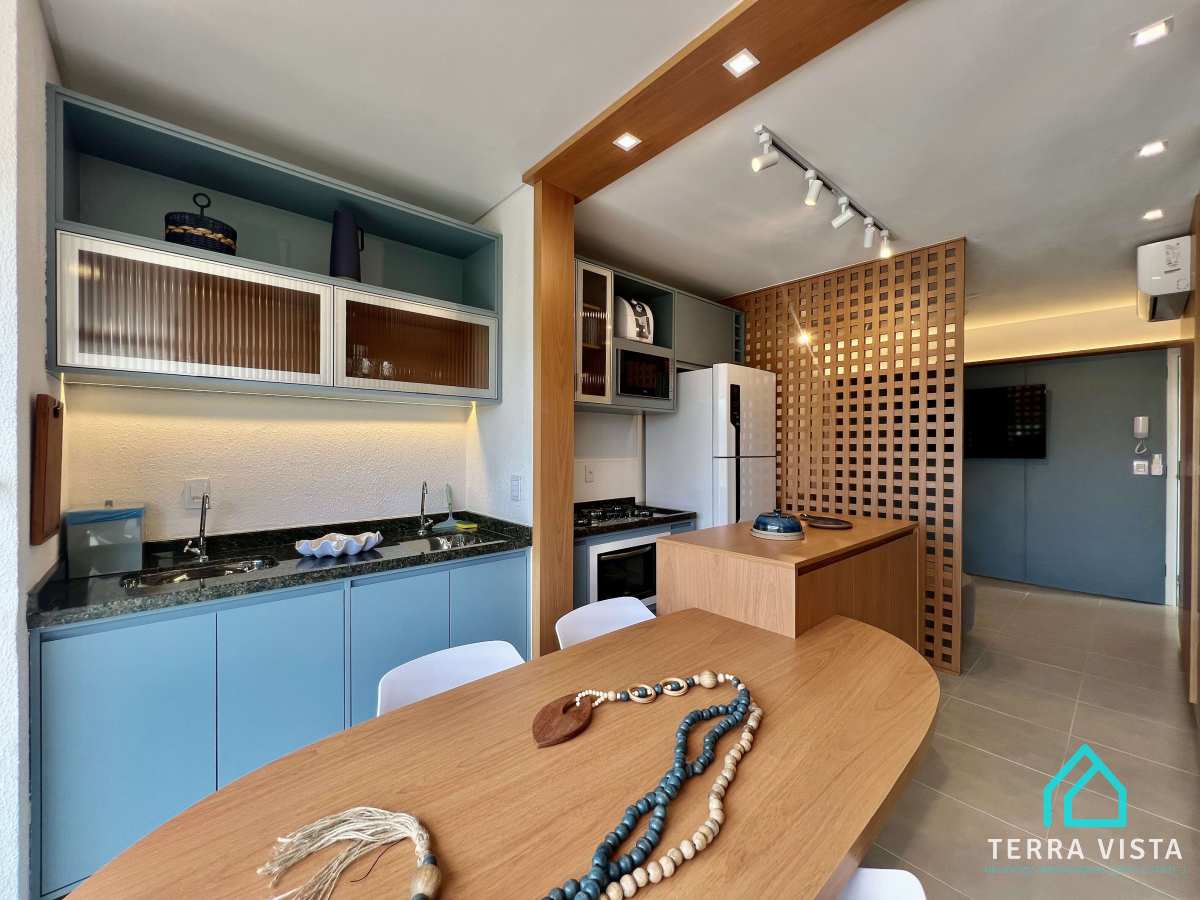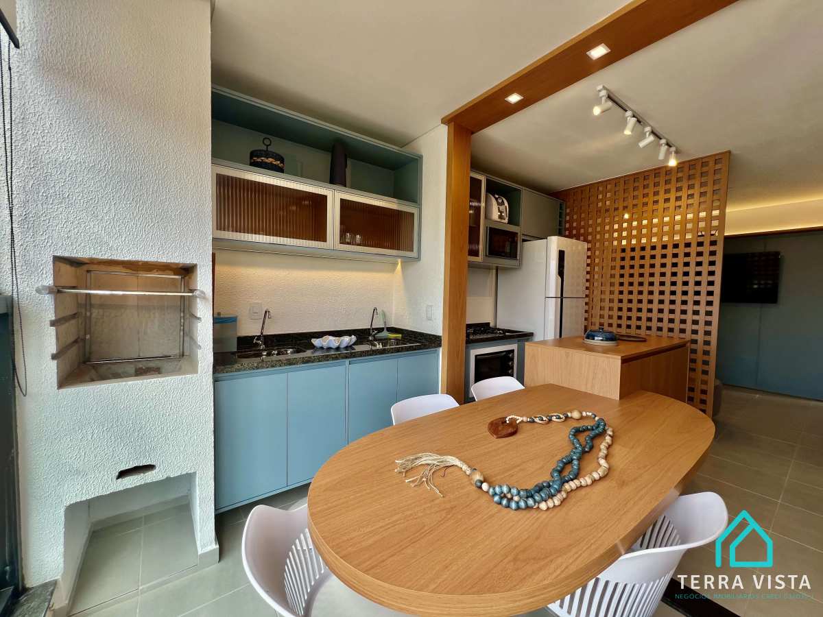 Contém uma suíte com ar condicionado com varanda, sala e cozinha com móveis planejados, uma linda varanda gourmet com vista mar, 1 lavabo e 1 vaga de garagem. apartamento todo decorado com móveis planejados em todos os cômodos,