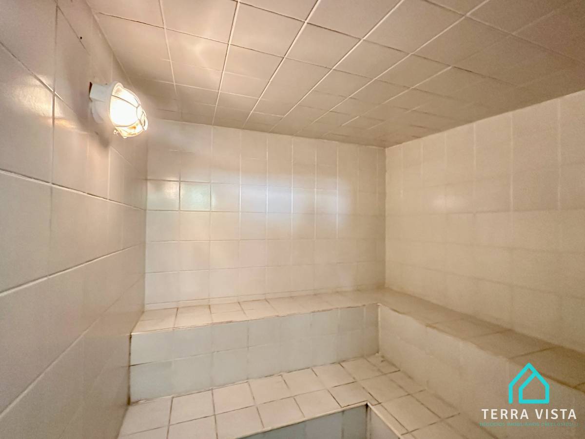 Condomínio com portão eletrônico, elevador, piscina adulto e infantil, área gourmet coletiva com 2 churrasqueiras e sauna.