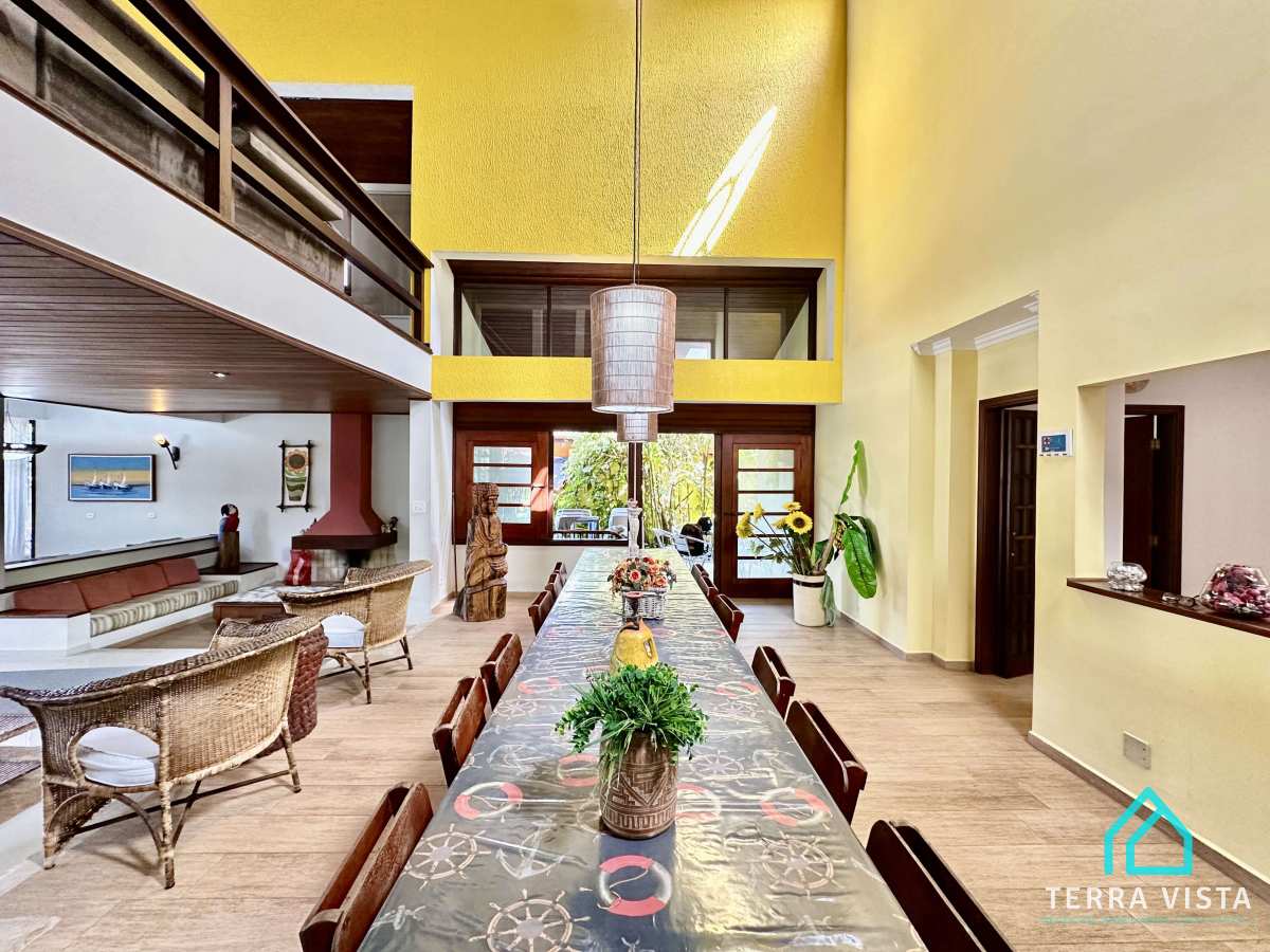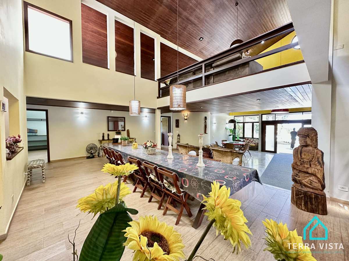 Sala imponente com pé direito alto, integrada em 4 ambientes distintos.
