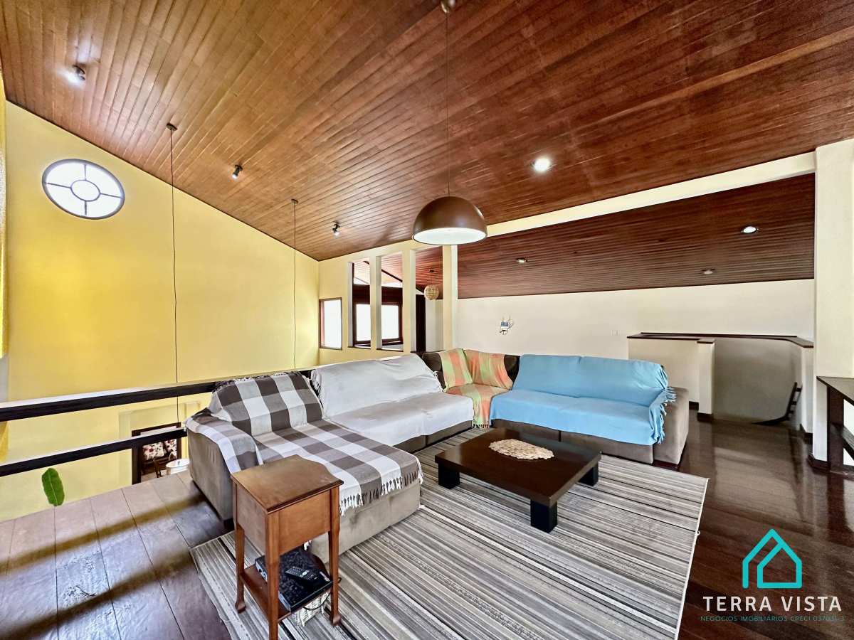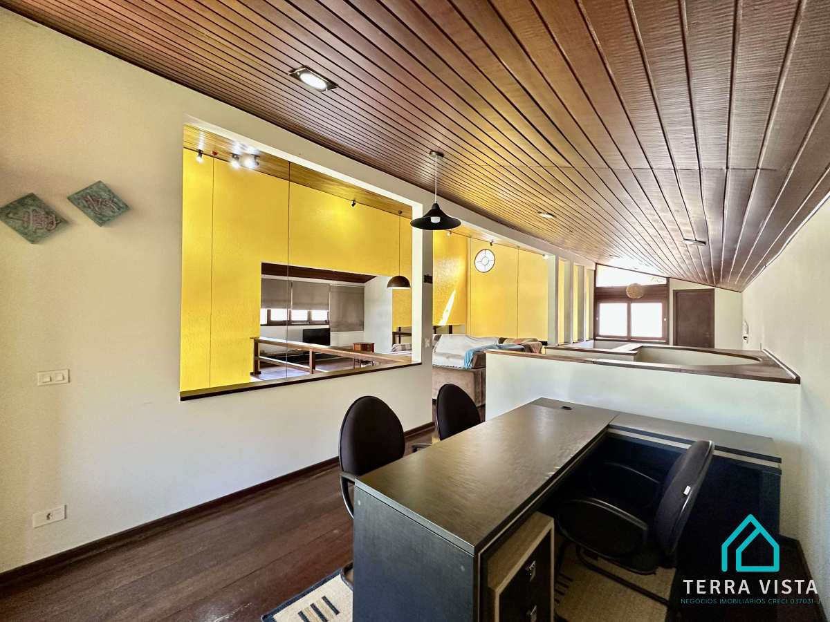 Mezanino com ampla sala e escritório com varanda, ideal para contemplar a vista e desfrutar momentos de tranquilidade.