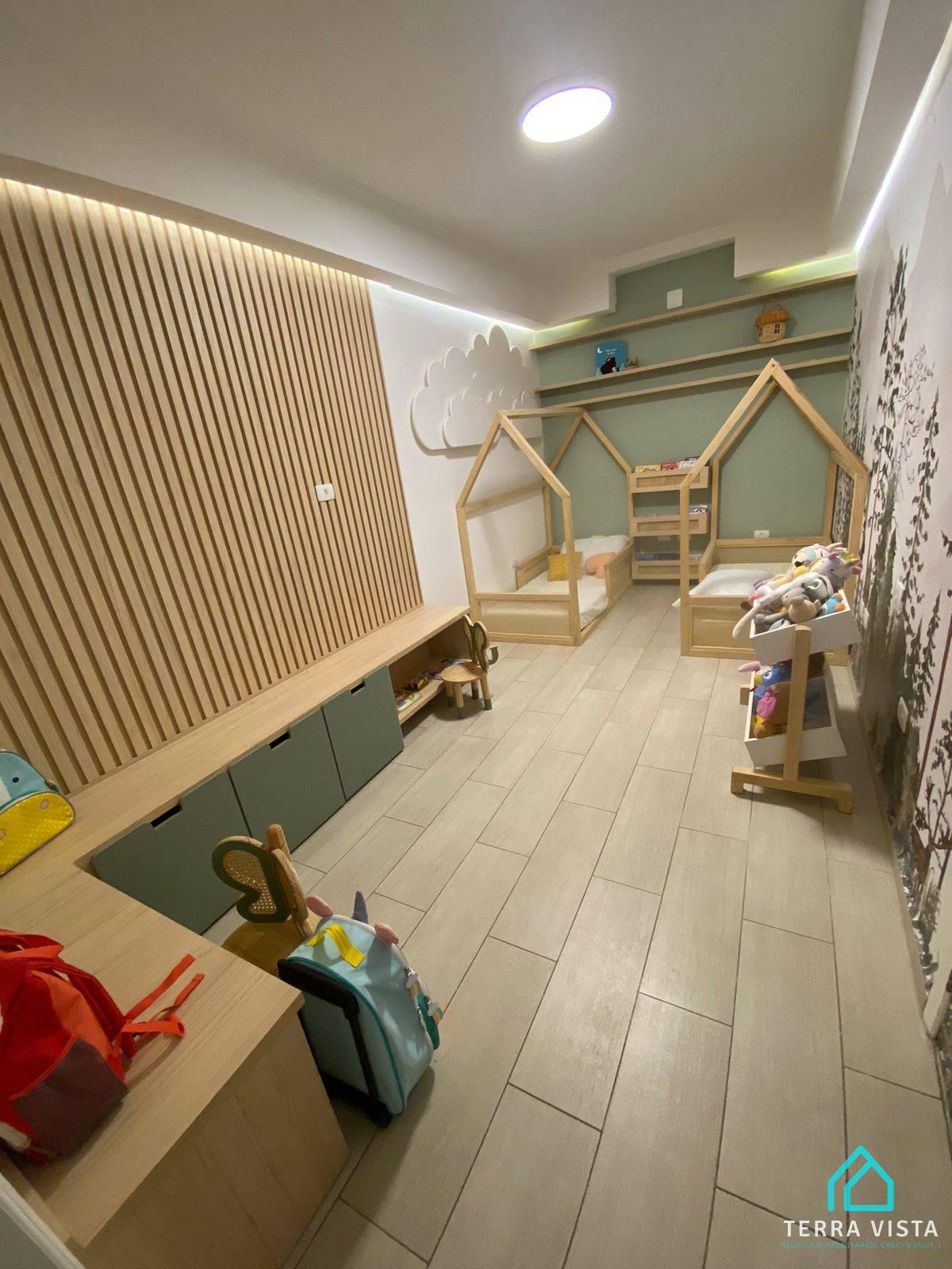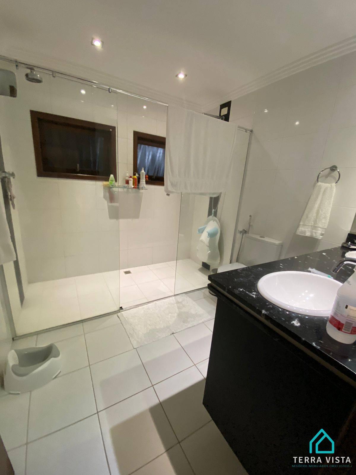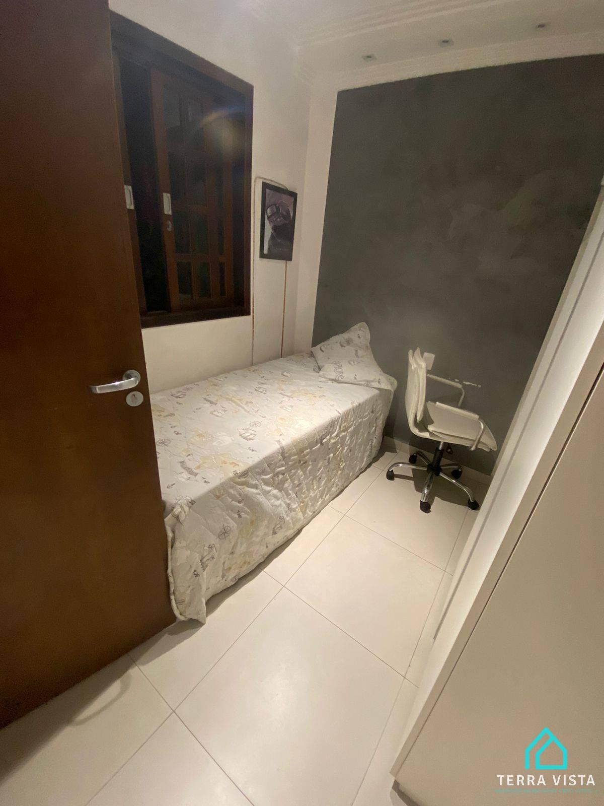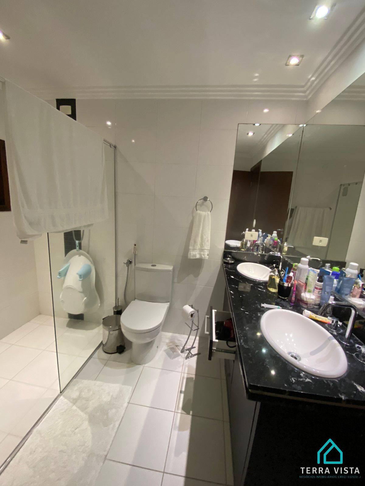 O imóvel tem 4 quartos, sendo 2 suítes, possui 5 banheiros, 3 salas e 2 vagas de garagem.