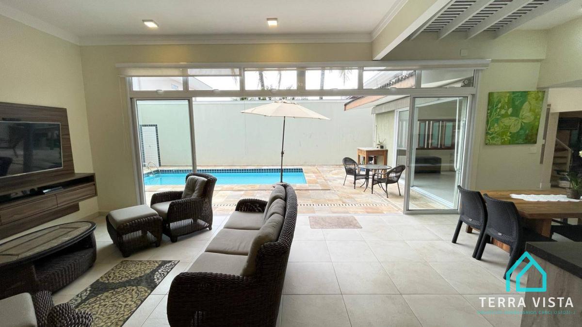 O imóvel tem 3 quartos, sendo 3 suítes, possui 4 banheiros, 3 salas e 4 vagas de garagem.
