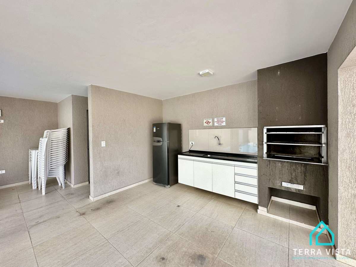 Condomínio conta com zeladoria, elevador, piscina e churrasqueira coletiva.